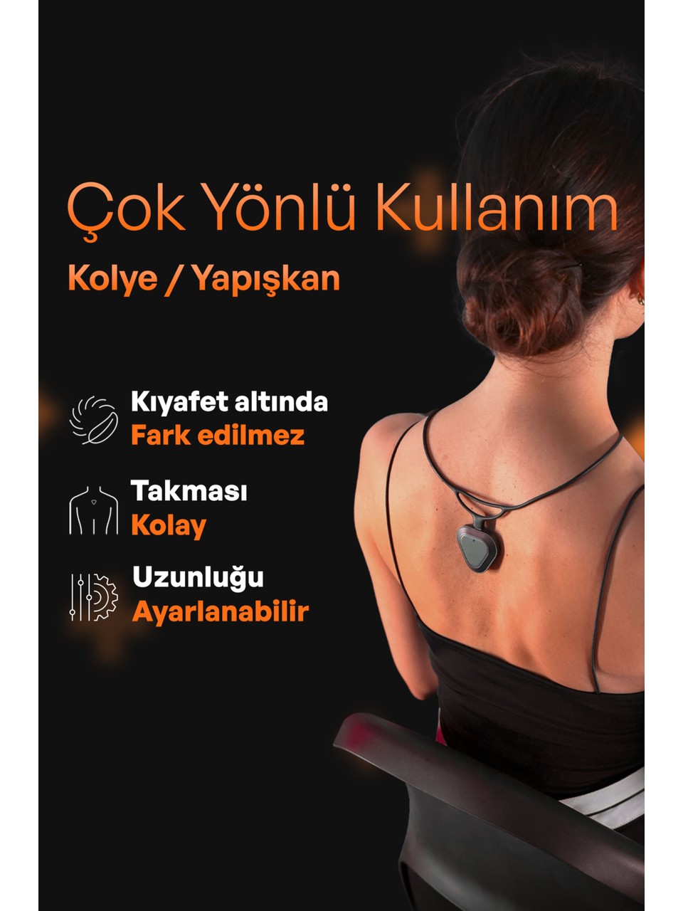 Ultra hafif ve kompakt yapısıyla kıyafet altında fark edilmeden kullanılabilir. Cilt dostu silikon malzemesi, uzun süreli kullanımlarda bile konfor sağlar. Gün boyu, ofiste veya yürüyüşte — her an doğru duruşta kalın.